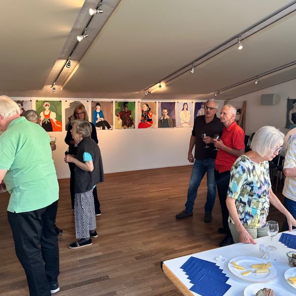 Im Pavillon der Wohnbaugenossenschaft hängen derzeit Portraitbilder von Stephan Imhof. Die Vernissage war am Mittwoch, 10. Sept. 2025. Die Ausstellung dauert bis Ende Oktober.